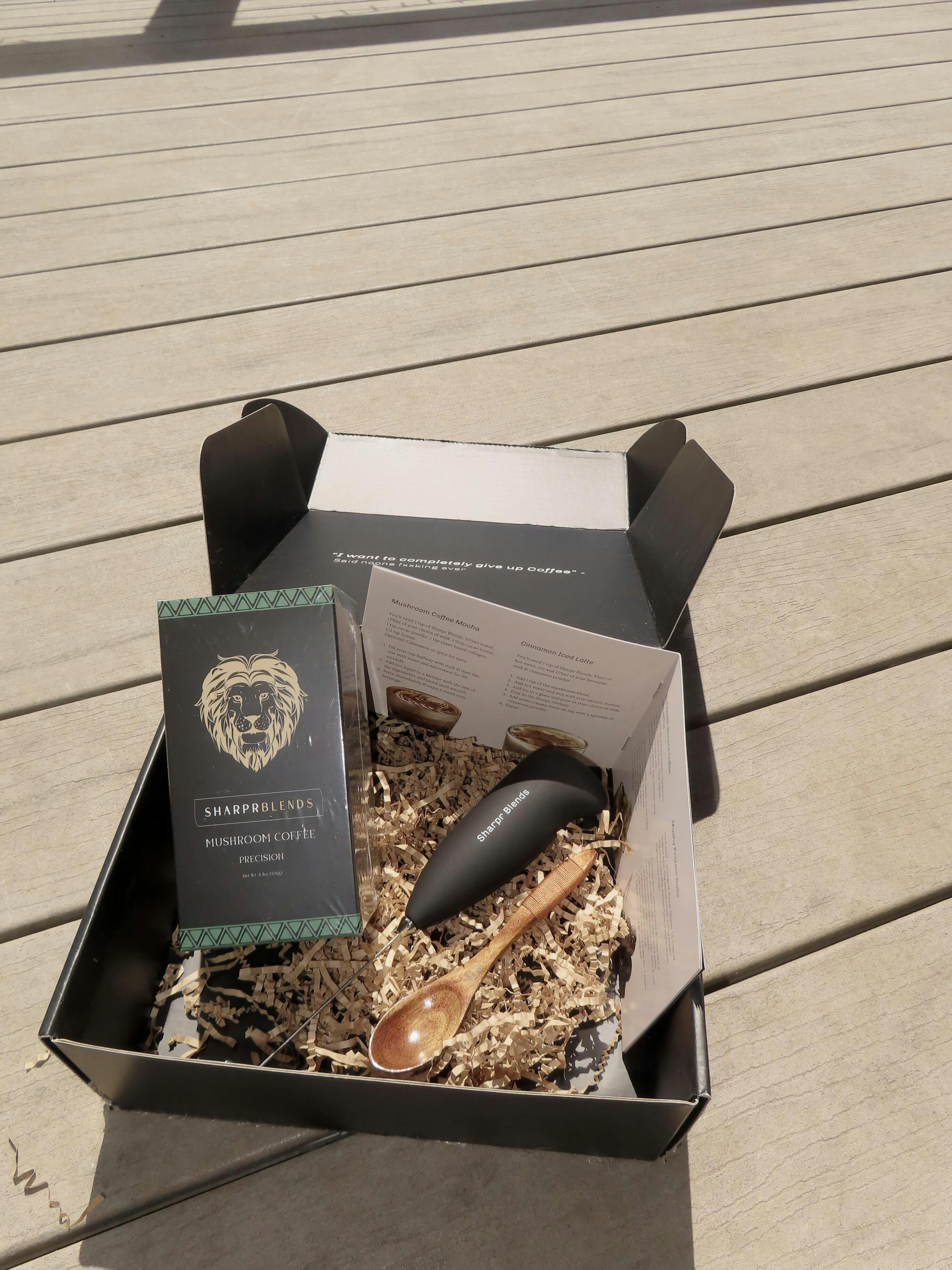 Get the Starter Kit: Calm Focus coffee (30 serves) + frother + spoon + recipe book.
